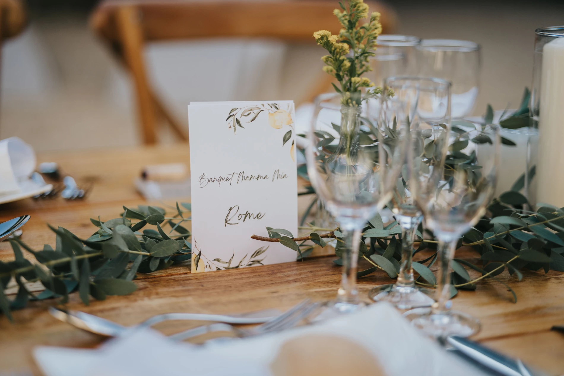 Notre galerie met en lumière une ambiance authentique où le mobilier en bois et les chaises élégantes apportent une touche naturelle et conviviale. Le décor végétal vert, rehaussé d’éclats de mimosa doré et de citron lumineux, crée une atmosphère fraîche et vibrante, à la fois élégante et apaisante.